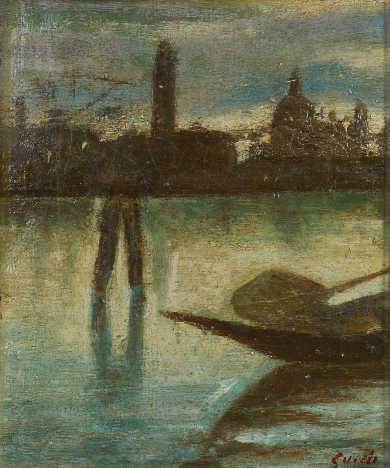 Virgilio Guidi (1891 - 1984) LA GIUDECCA olio su tela, cm 29,5x25 firma sul...