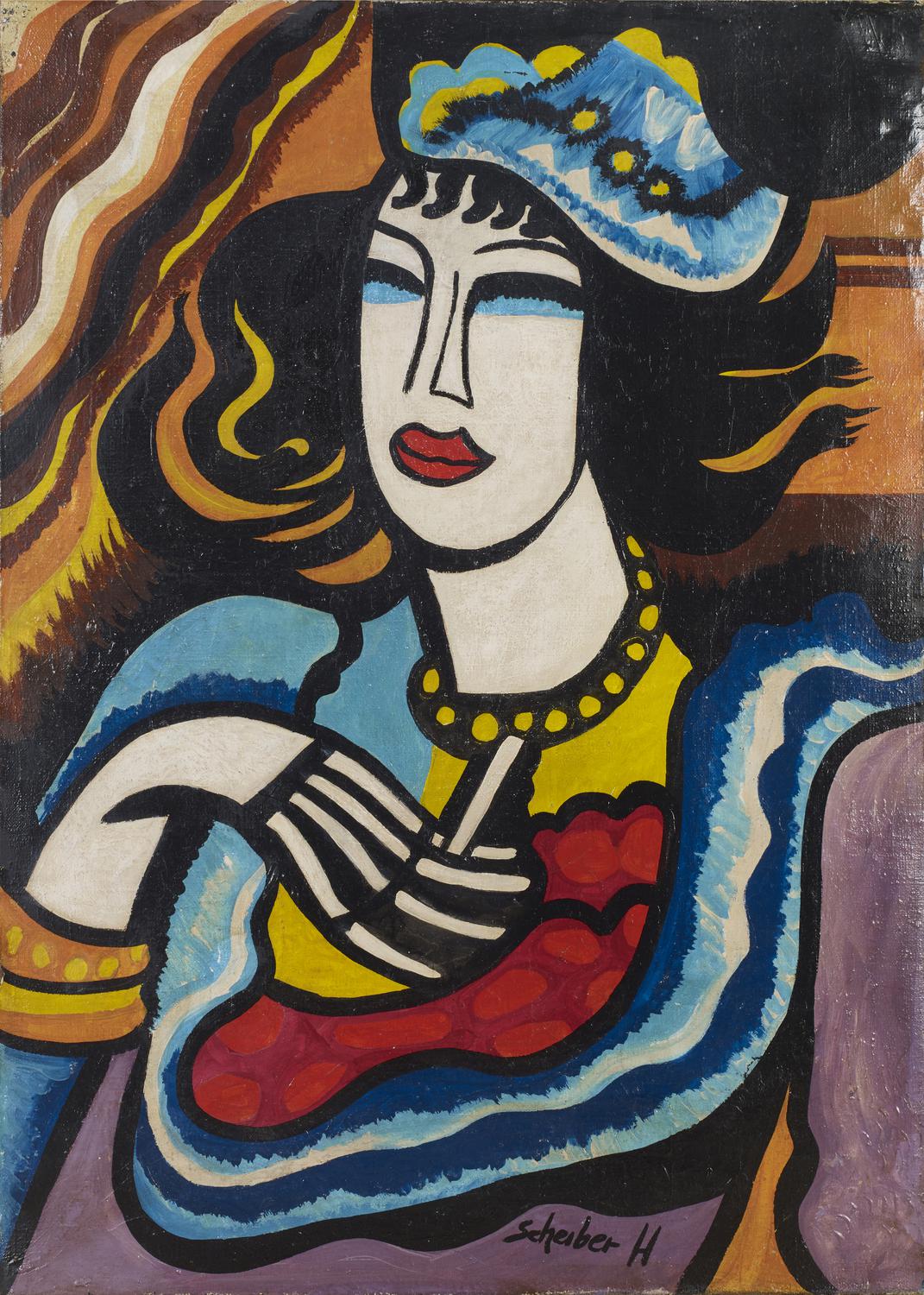 Hugo Scheiber (1873 - 1950) DONNA CON CAPPELLINO E SIGARETTA olio su tela, cm...