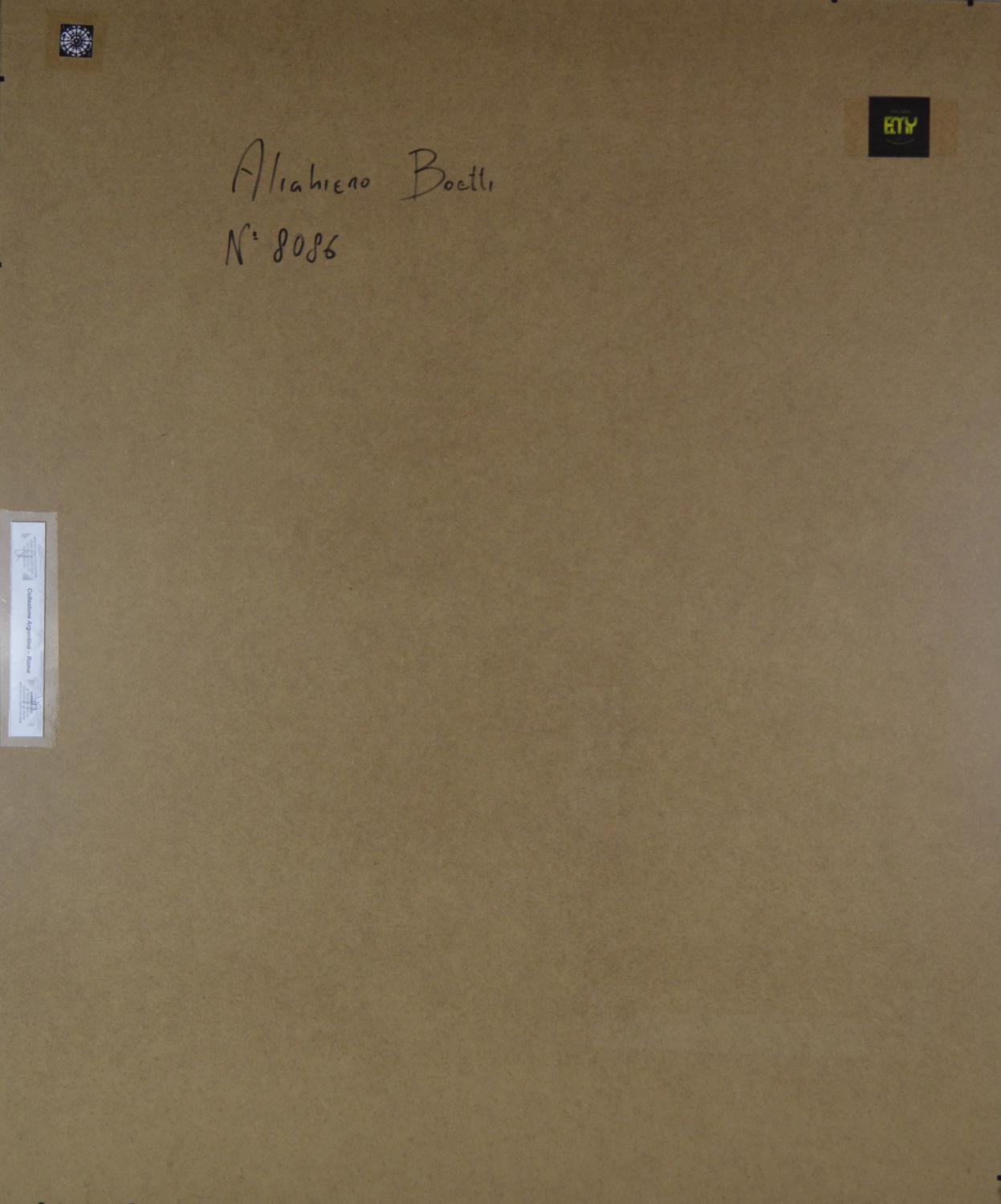 L'opera è accompagnata da autentica dell'Archivio Alighiero Boetti su fotografia rilasciata in data 21/06/2016