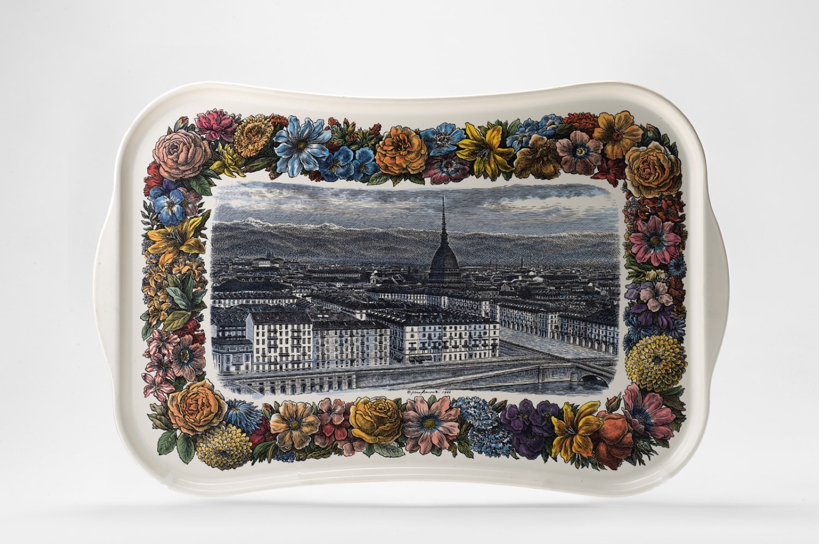 serigrafato con panorama di Torino e decoro florealeserigrafato con panorama di Torino e decoro floreale