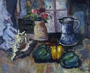 FERGNANI CORRADO (Viguzzolo d'Alessandria 1910 - Milano 1986 ) “Natura morta” Olio su tela cm. 45x55 Firma in basso a destra ed al retro. Autentica dell'autore a tergo dell'opera.