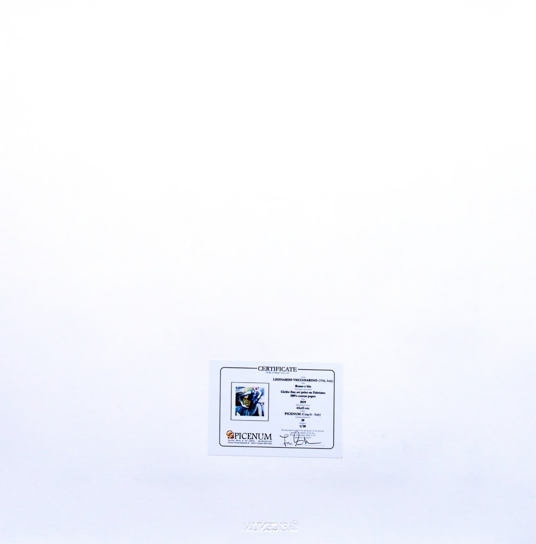 certificato di autenticità e timbro a secco dell'editore Picenum