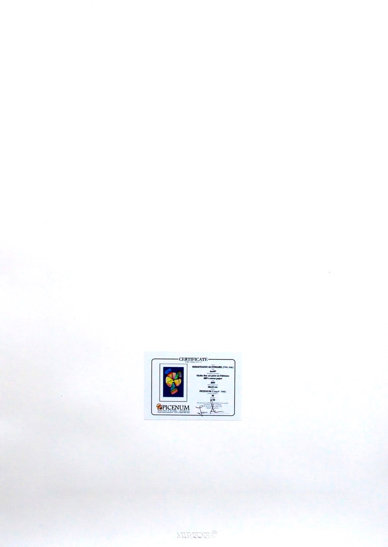 certificato di autenticità e timbro a secco dell'editore Picenum