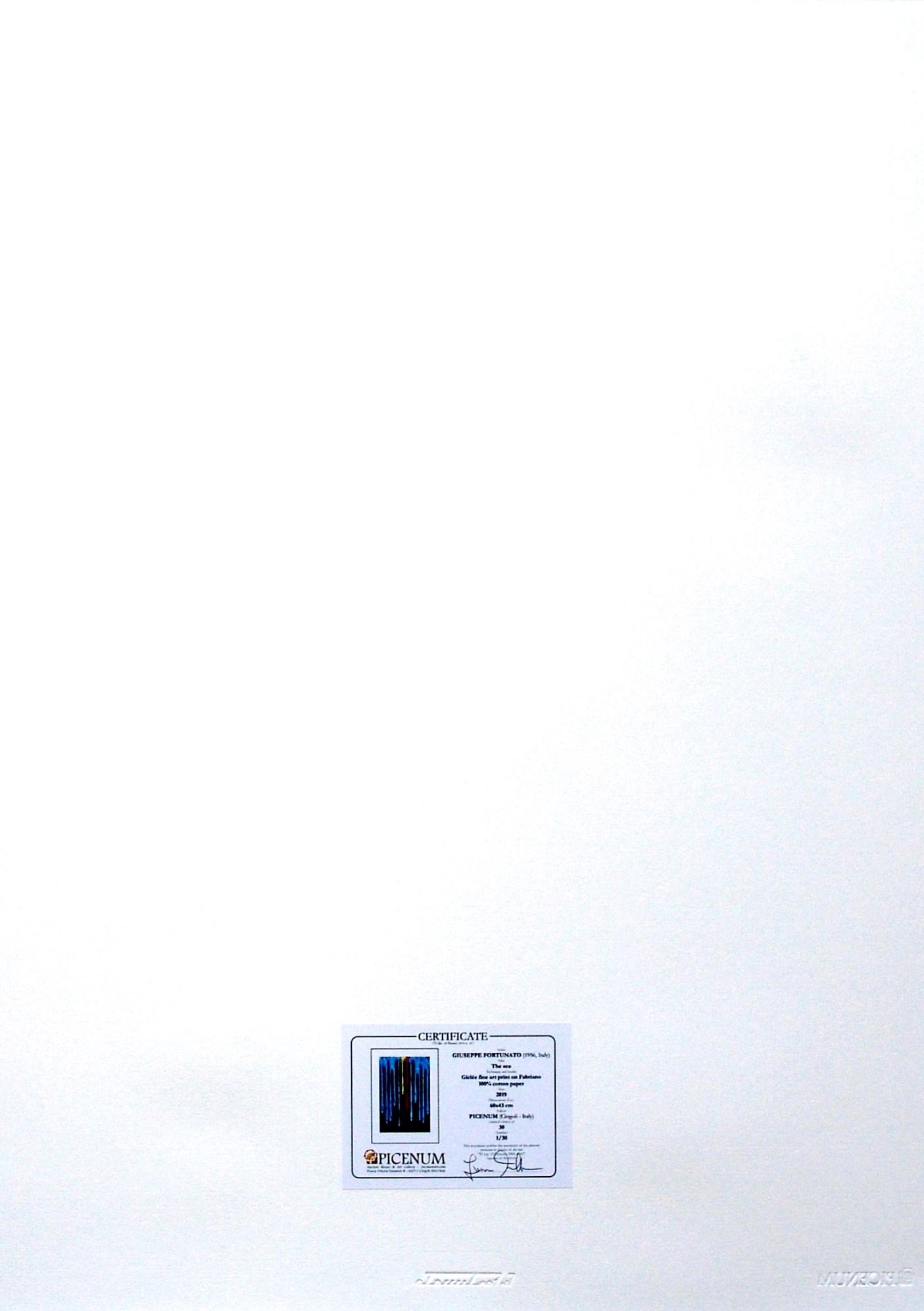 certificato di autenticità e timbro a secco dell'editore Picenum