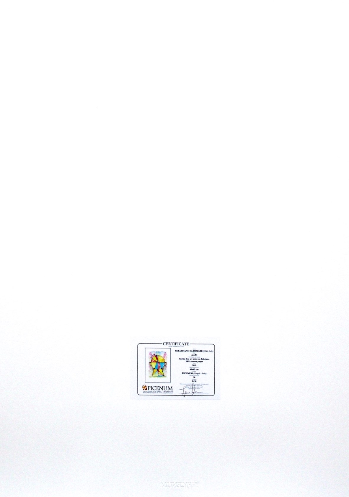 certificato di autenticità e timbro a secco dell'editore Picenum