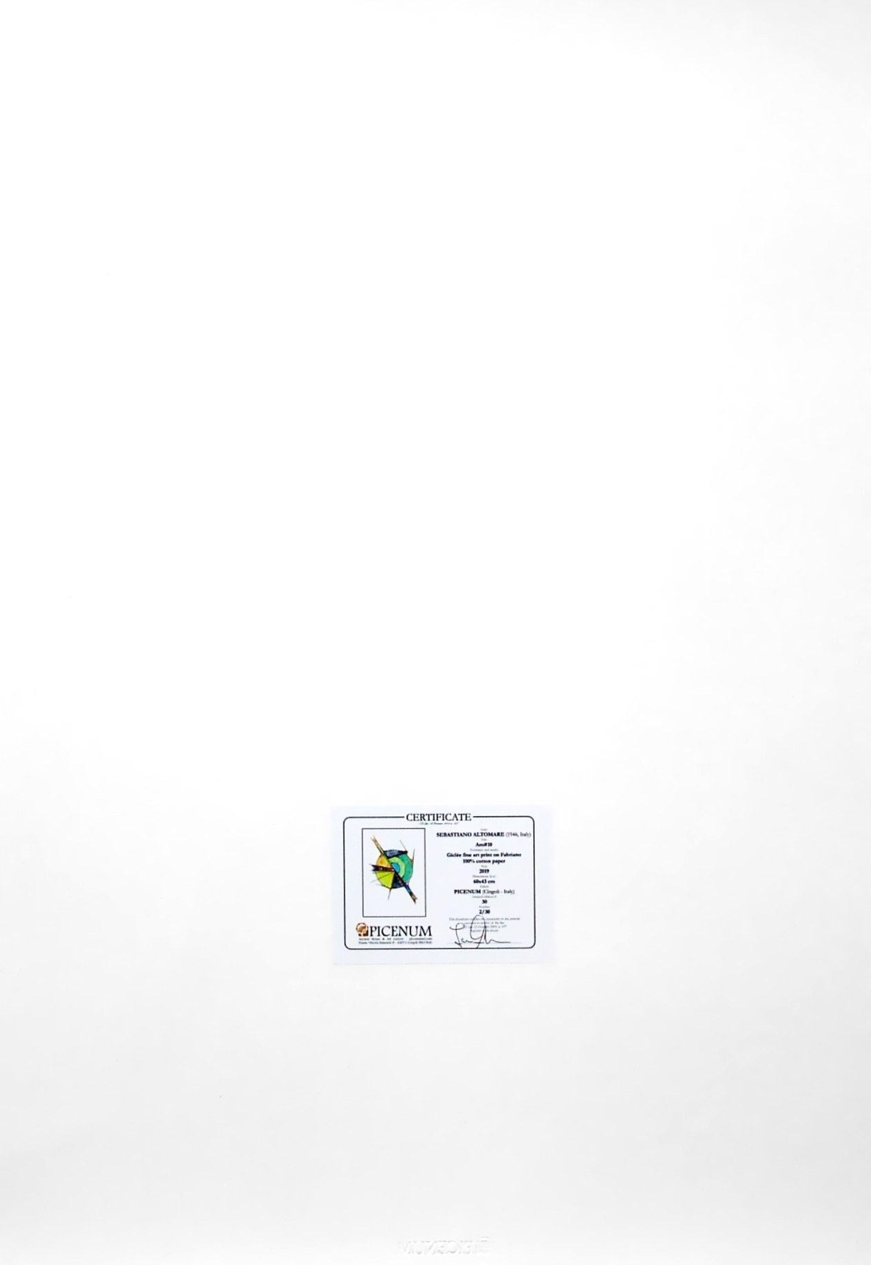 certificato di autenticità e timbro a secco dell'editore Picenum