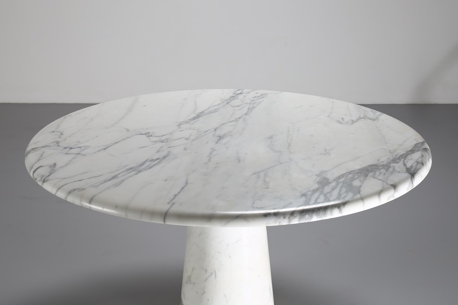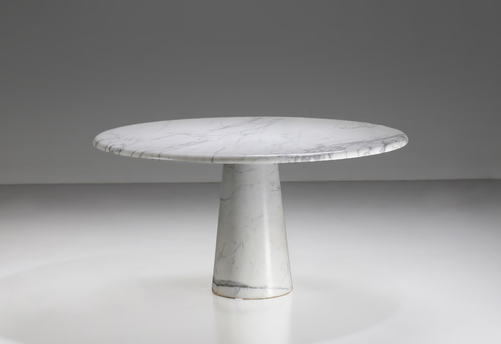 MANGIAROTTI ANGELO (n. 1921) Tavolo produzione Tisettanta, anni '70. Marmo di Carrara.. Cm 138,00 x 73,00 x 138,00. Bibliografia (per un modello simile): G. Gramigna, Repertorio 1950-1980, Mondadori, 1985, p. 293