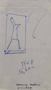 MARINI MARINO (Pistoia 1901 - Viareggio 1980 ) “Cavallo e cavaliere” 1959 Stilo ed inchiostro su carta cm. 23x13.5 Firma e data in basso al centro. Autentica su foto rilasciata dalla Fondazione M. Marini con n. 528.