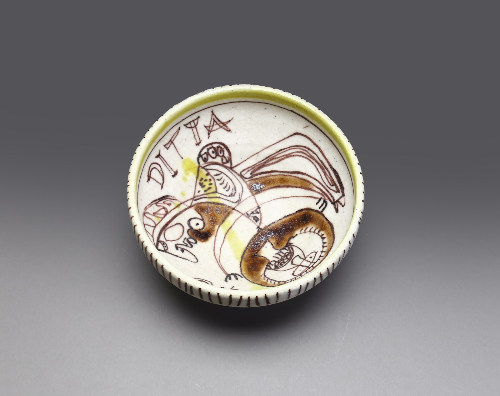 GAMBONE GUIDO (1909 - 1969) Ciotola anni '50. Ceramica policroma.. Cm 21,00 x 9,50. Firma dell'autore.