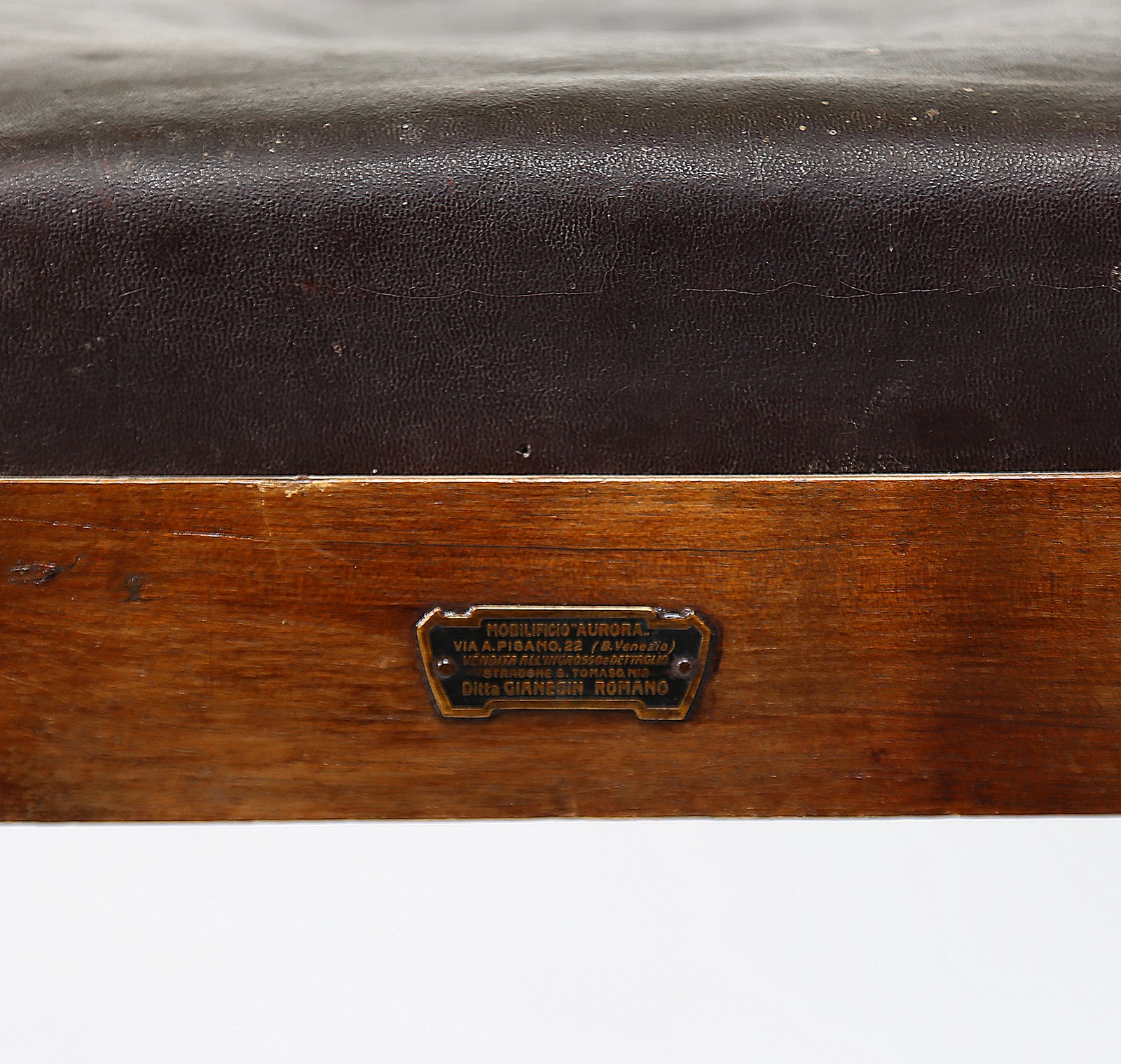 DEL GIUDICE BRENNO (1988 - 1957) (attribuito) Coppia di sedie produzione Mobilificio Aurora, anni '30. (2). Legno di noce e pelle. Cm 43,00 x 94,00 x 43,00.