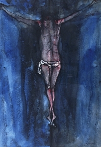 FABBRI AGENORE (Barba 1911 - Savona 1998 ) “Crocefissione” 1958 Gouache su cartoncino cm. 50x35 Firmato in basso a destra. Autentica dell'autore su foto.