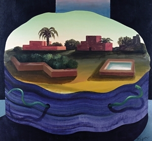PIGNATELLI ERCOLE (Lecce 1935) “Siccita' miraggio” 1983 Olio su tela cm. 60x56 Firmato in basso a destra. Titolo, firma ed anno al retro. Autentica dell'autore su foto.