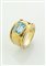 in oro giallo, a fascia, con al centro topazio azzurro taglio ottagonale