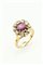 in oro giallo, sommità a margherita, al centro rubino taglio ottagonale di ct 1,0 ca e contorno di diamanti taglio brillante di vecchio taglio per totali ct 0,70 ca