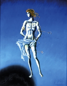 LANFRANCO (Quingentole 1920) “La leggenda aurea di S. Sebastiano” Olio su tela cm. 30x24 Firmato in basso a destra. Timbro al retro dello Studio Lanfranco.