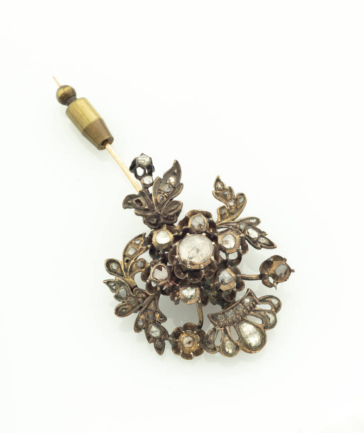 in argento ed oro rosa a bassa caratura, XIX secolo, con rosette di diamanti per totali ct 1,0 ca