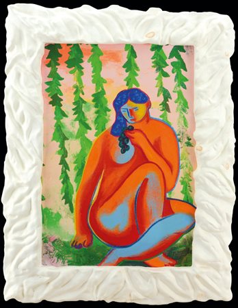 SANDRO CHIA Firenze 20/04/1946 Senza titolo monotipo su cartoncino cm. 98x87 con cornice realizzata dell'artista cm. 129x95, firma in basso a destra, dichiarazione d'autenticità dell'artista su foto.