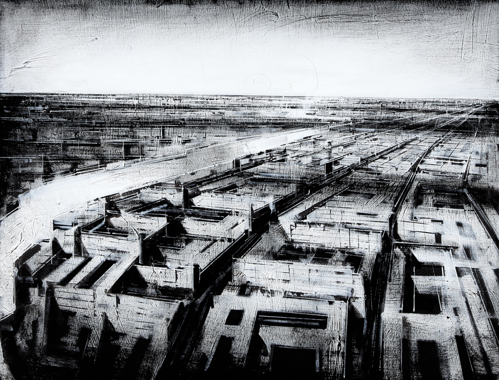 JONATHAN GUAITAMACCHI Londra 1961 Nord Est 5, London, 2003 olio su carta intelata cm. 60x80, firma, titolo e anno al retro.