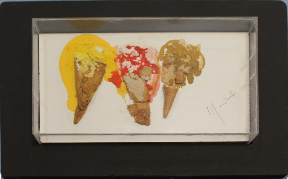 Coni di gelato , acrilico , colla su masonite