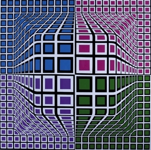 VASARELY VICTOR (Pecs 1908 - Parigi 1997 ) “Simpo” 1986/91 Acrilico su tela cm. 80x80 Firmato in basso a destra. Firma, anno e titolo al retro. Autentica su foto rilasciata da Michele Vasarely n. 749.
