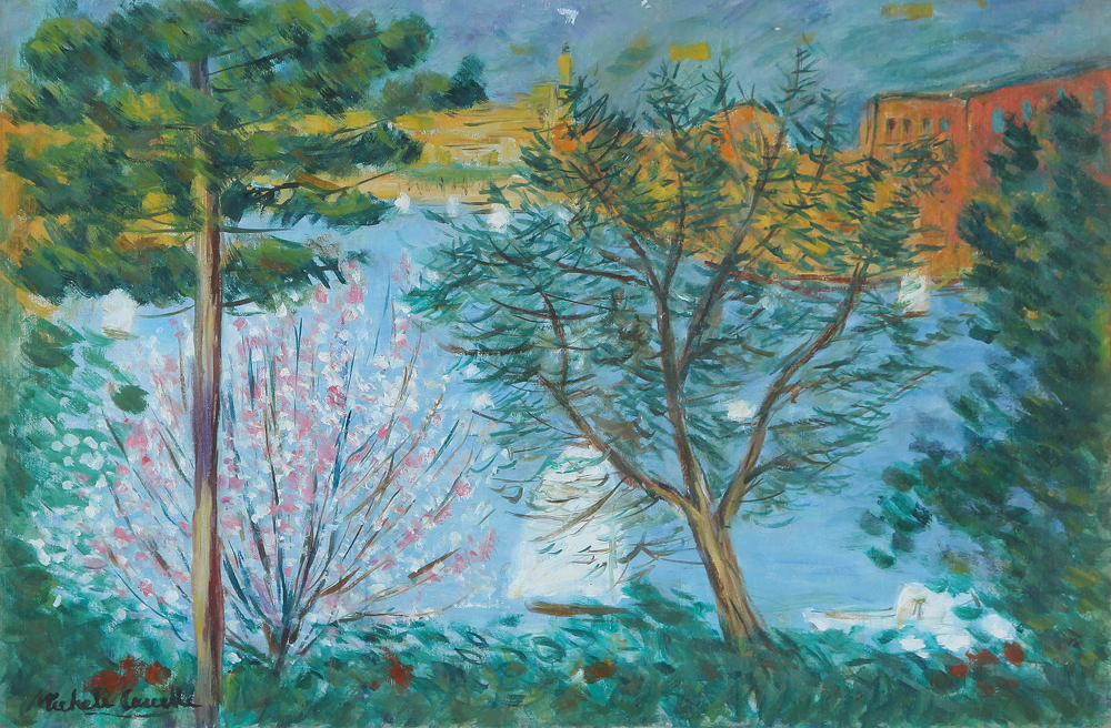 MICHELE CASCELLA Ortona (Ch) 07/09/1892 - Milano 27/08/1989 Portofino olio su tela cm. 40x60, firma in basso a sinistra e al retro, dichiarazione d'autenticità dell'artista su foto.