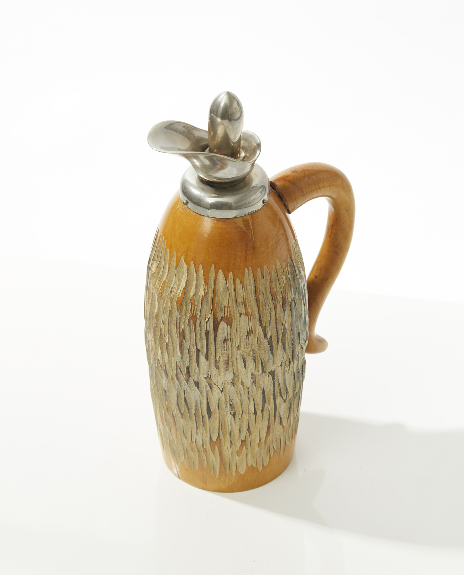 Thermos in legno dolce intagliato con tappo in metallo argentato