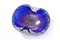 Posacenere in vetro bullicante di Murano di colore blu; la decorazione presenta spruzzi dorati.