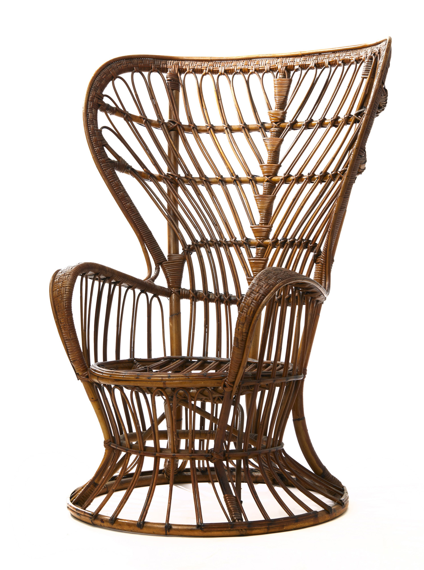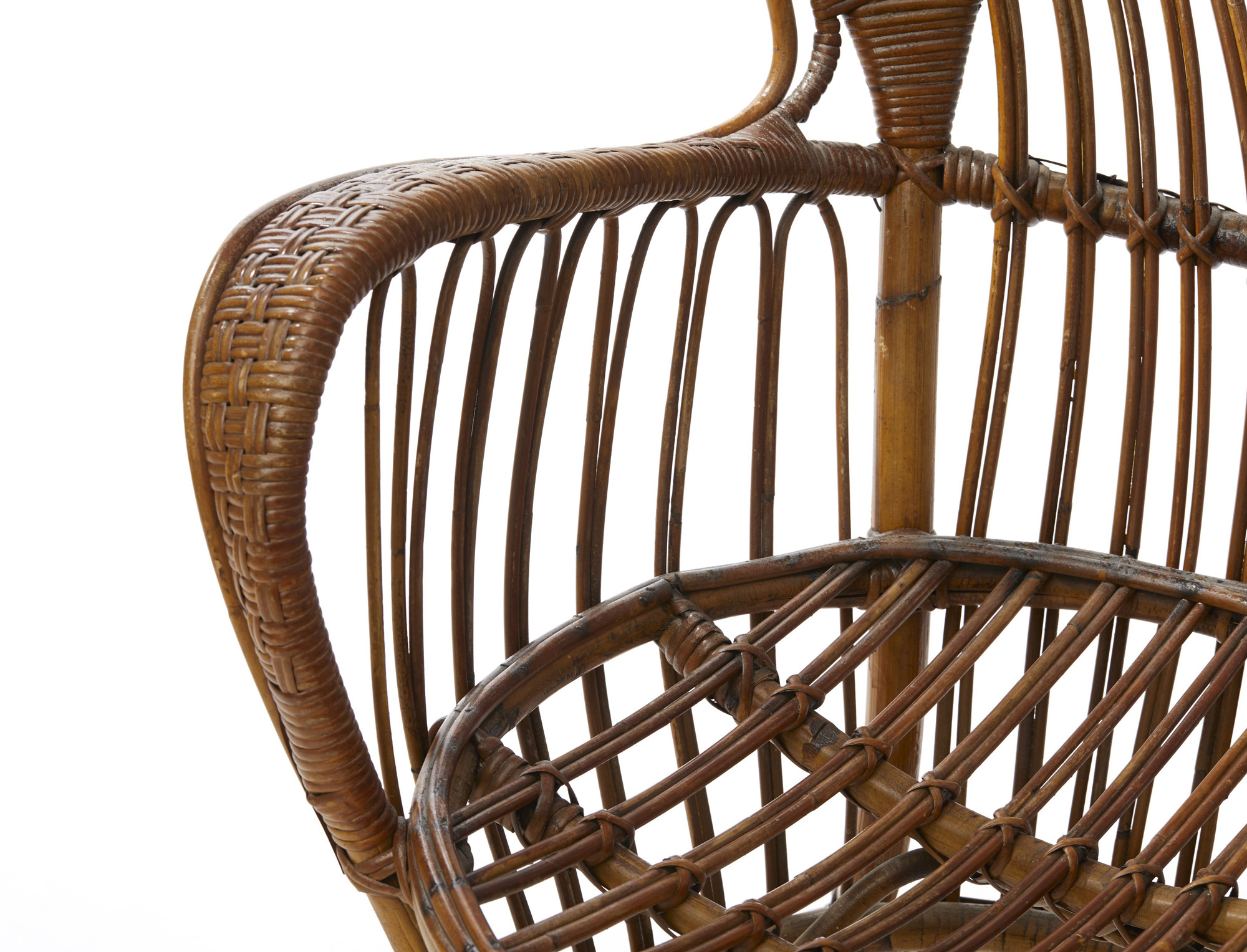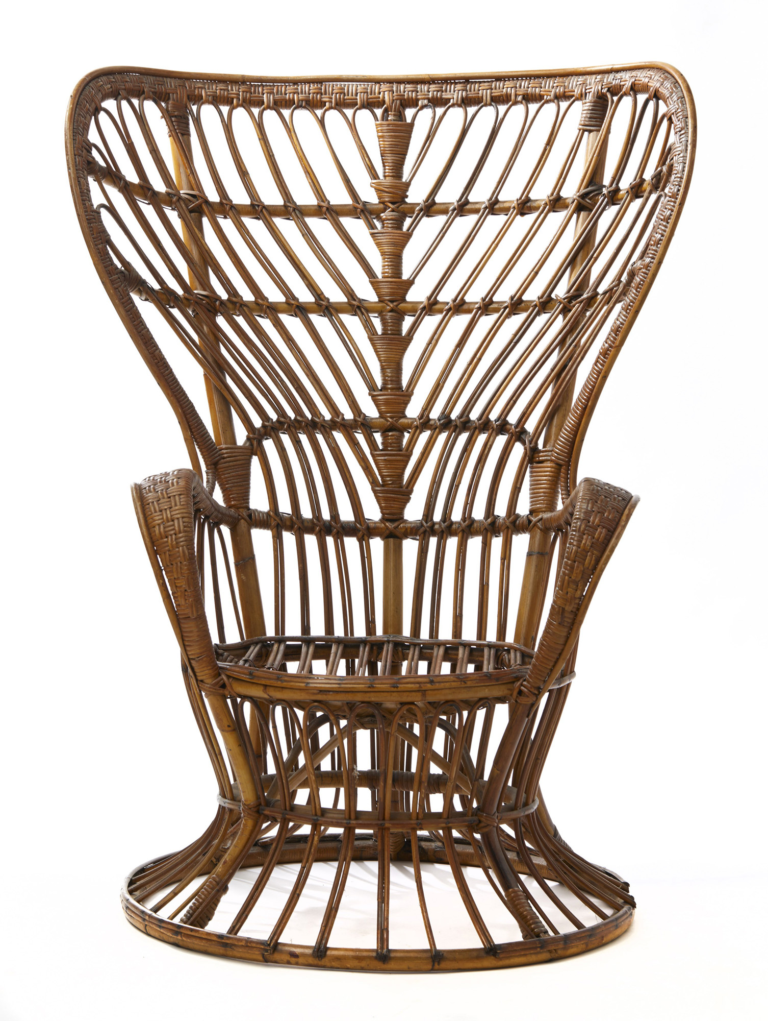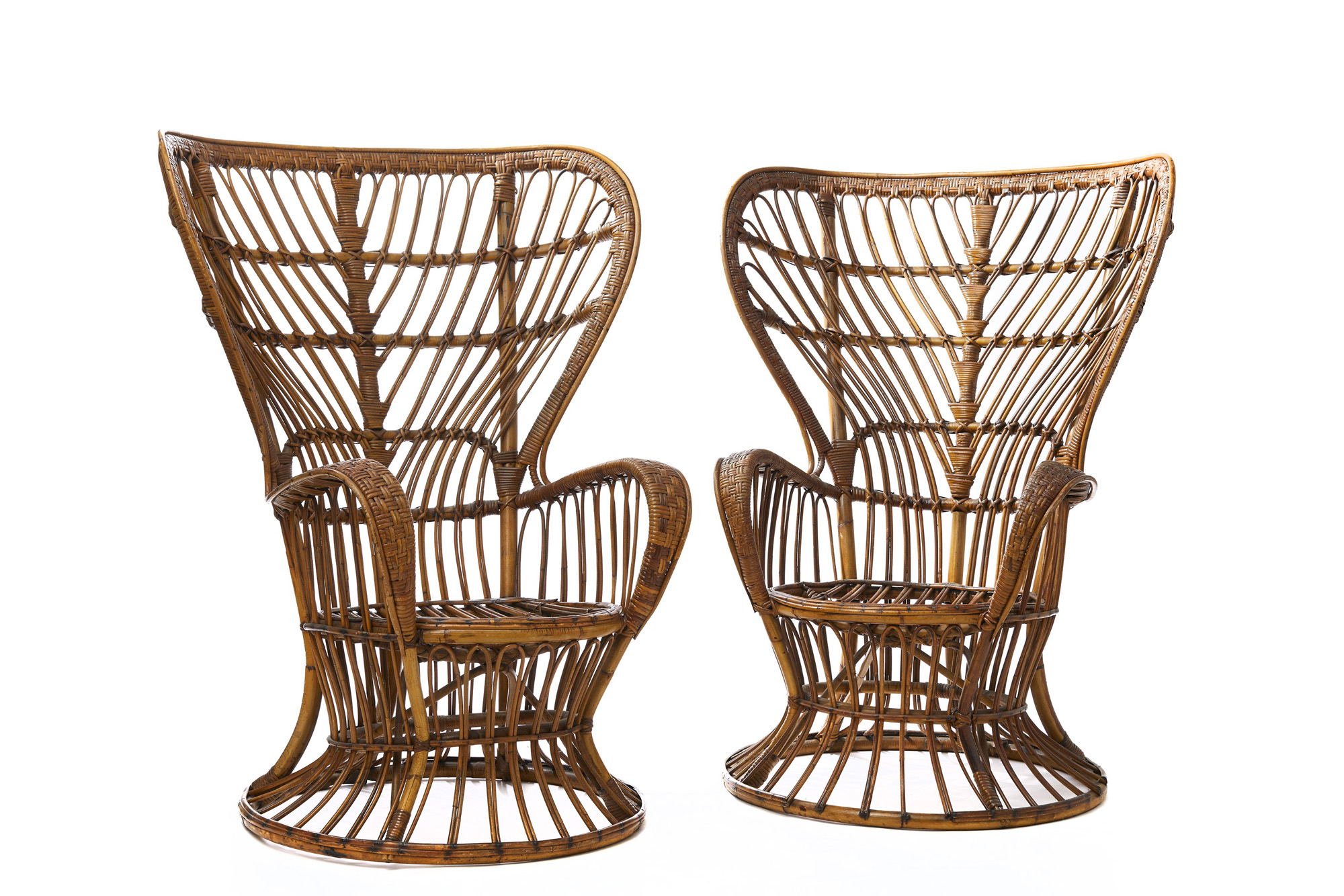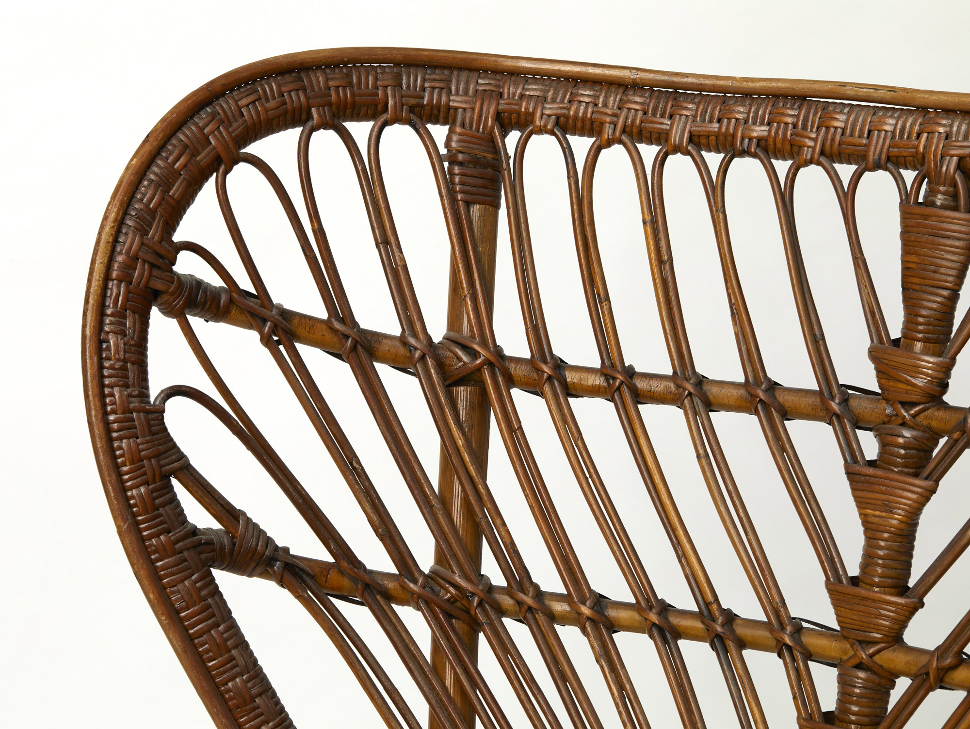 Coppia di poltrone con struttura in giunco e tessitura in canna d’India