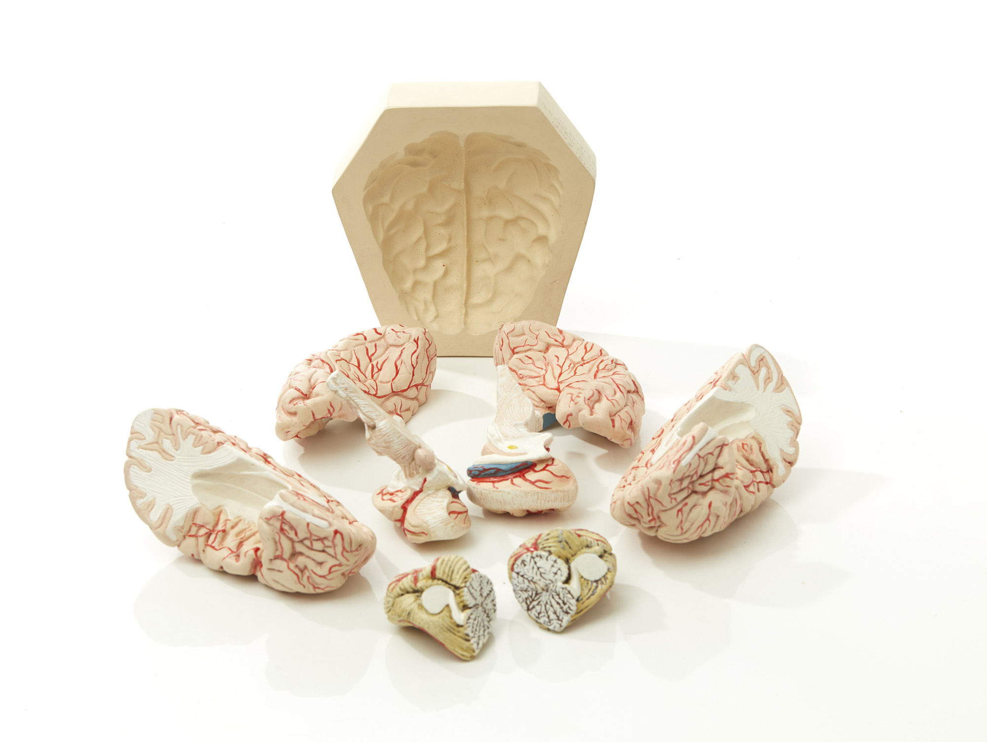 Modello anatomico di cervello umano in resina, scomponibile.