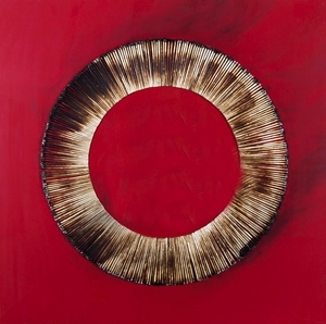 AUBERTIN BERNARD (Fontenay aux Roses 1934) “Territori di fuoco” 2006 Fiammiferi bruciati su tavola cm. 70x70 Firma ed anno al retro. Etichetta al retro del Museo Parisi (Va) e timbro di Rosemberg Casa d'Aste (Mi).