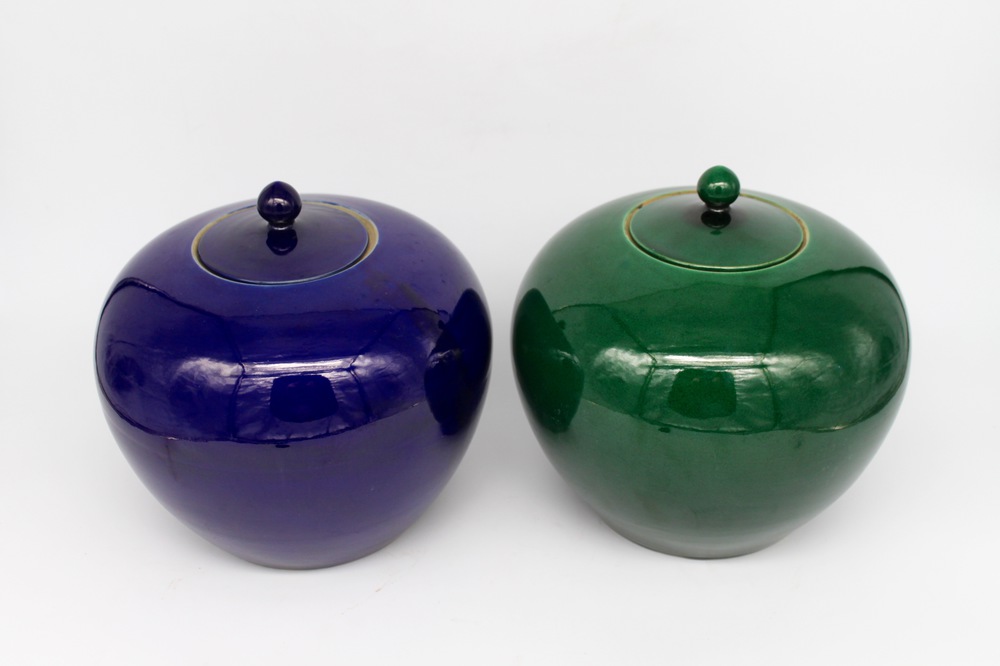 Due potiches in porcellana blu e verde - Two potiches in blu and green porcelain