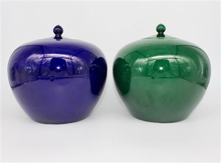 Due potiches in porcellana blu verde - Two potiches in blue and green porcelain