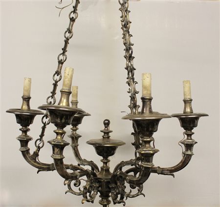 Lampadario a sei luci in metallo argentato - A six flames silver metal chandelier