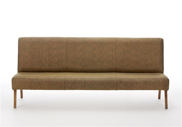 Divano a tre posti. Probabile produzione Cassina, Meda, anni '50. Gambe in legno massello, rivestimento in tessuto multicolore a fondo beige. (cm 200x87x65) (difetti)