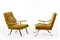 Coppia di poltrone con schienale a posizione variabile modello "Digamma". Produzione Gavina, San Lazzaro di Savena, 1957. Struttura metallica in acciaio smaltato, finiture in ottone, imbottitura in gommapiuma, rivestimento originale in velluto color senape. (posizione coricata: cm 70x67x106; posizione dritta: cm 70x84x84) (lievi difetti)