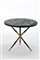 Coffee table of the series "Emisfero". Milan, 1950s. Wooden top covered in silk-screened aluminum foil, wooden and brass structure. Traces of the adhesive paper label under the base. (h 49 cm.; d 60 cm.) (Slight defects and minor restorations)