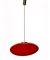 Lampada a sospensione con paralume in vetro incamiciato rosso, montatura in ottone. Italia, anni '50/'60. (h cm 85; d cm 45) (lievi difetti)