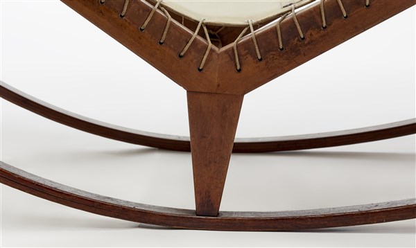 Sdraio a dondolo modello "PS16". Esecuzione Poggi, Pavia, 1959. Legno, corda e stoffa. (cm 70x75x163) (difetti e mancanza del cuscino)