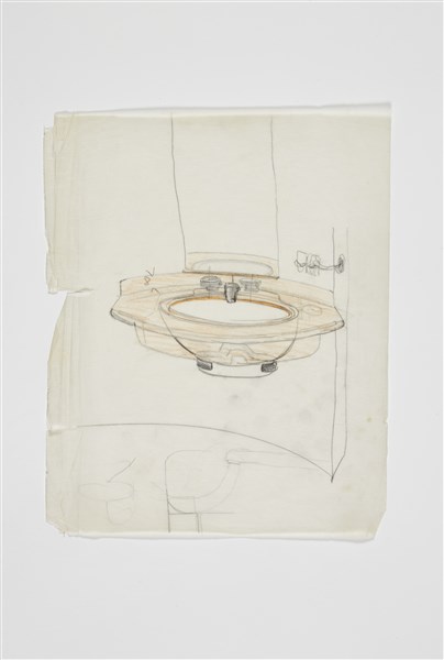 Studio per lavabo del bagno di Casa Zentner, Zurigo 1964-1969. Venezia, 1964-66. Matita e pastello colorato arancione su carta da spolvero. (cm 30x23,5) (difetti)