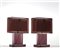 Coppia di lampade da tavolo in plexiglass ametista opalino e ottone cromato. It