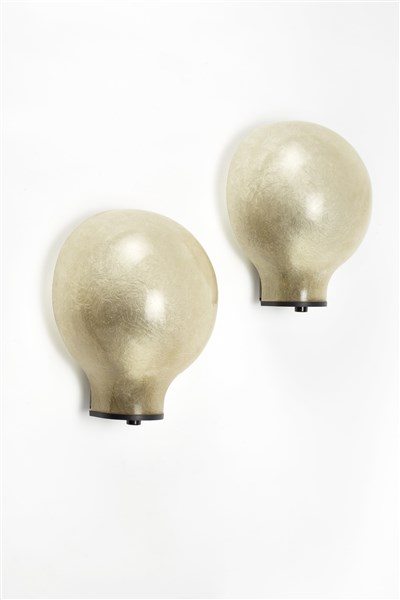 Coppia di lampade da parete con attacco in plastica e acciaio corrugato marrone, diffusori a semicalotta in metacrilato corrugato sulla superficie interna. Italia, anni '80/'90. (h cm 28; d cm 21,5) (lievi difetti)