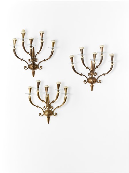 Lotto 958 | Lotto di tre appliques a cinque fiamme su due ordini con struttura in ottone lu