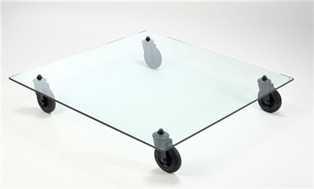 Gae Aulenti Tavolo con ruote. Produzione Fontana Arte, Milano, anni '80. Vetro m