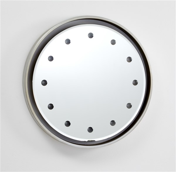 Circular backlit mirror with aluminum frame. Italy, 1960s. (d 73.5 cm.) (defects)