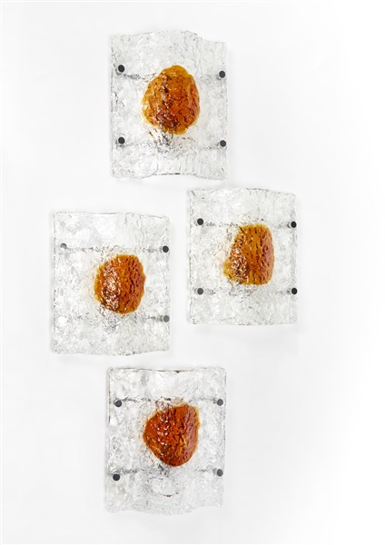Mazzega (Attribuito) Quattro appliques con struttura in acciaio e pannelli in ve