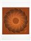 Panel in cretonne printed fabric in shades of brown and orange framed of the series "Collection Decor". 1970s. Signed on the lower right. (110x110 cm.)