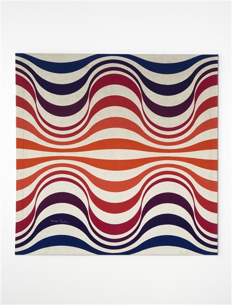 Verner Panton Pannello in tessuto stampato cretonne nei toni del blu, viola, ros