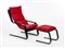 Armchair with footrest model "Long Waves". Produced by Carlo Ratti, Liss, 1970s. Structure in painted curved plywood, padded cushions covered with red cloth. (armchair 90x95.5x69 cm; pouf 56x45x53 cm) (slight defects)