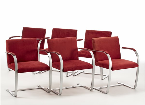 Ludwig Mies van der Rohe Lotto di sei poltroncine modello "Brno". Produzione Kno