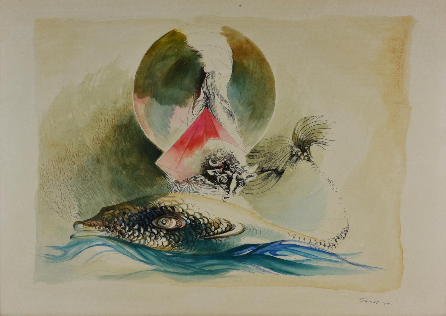 Tolomeo SENZA TITOLO tecnica mista su carta, cm 51x72 sul fronte: firma e...